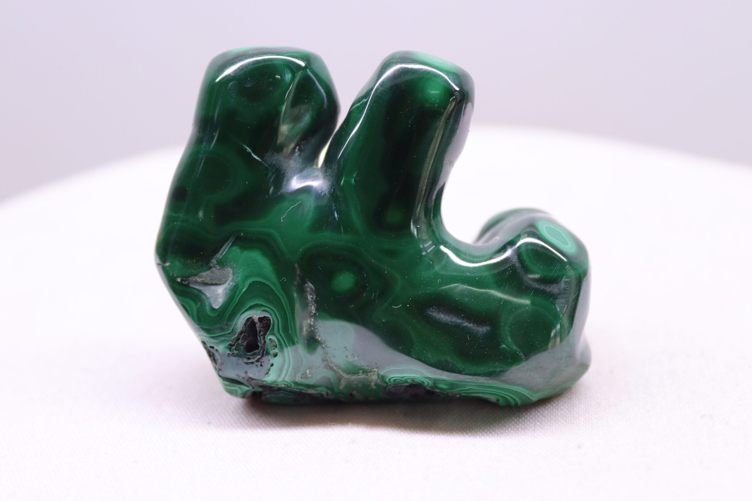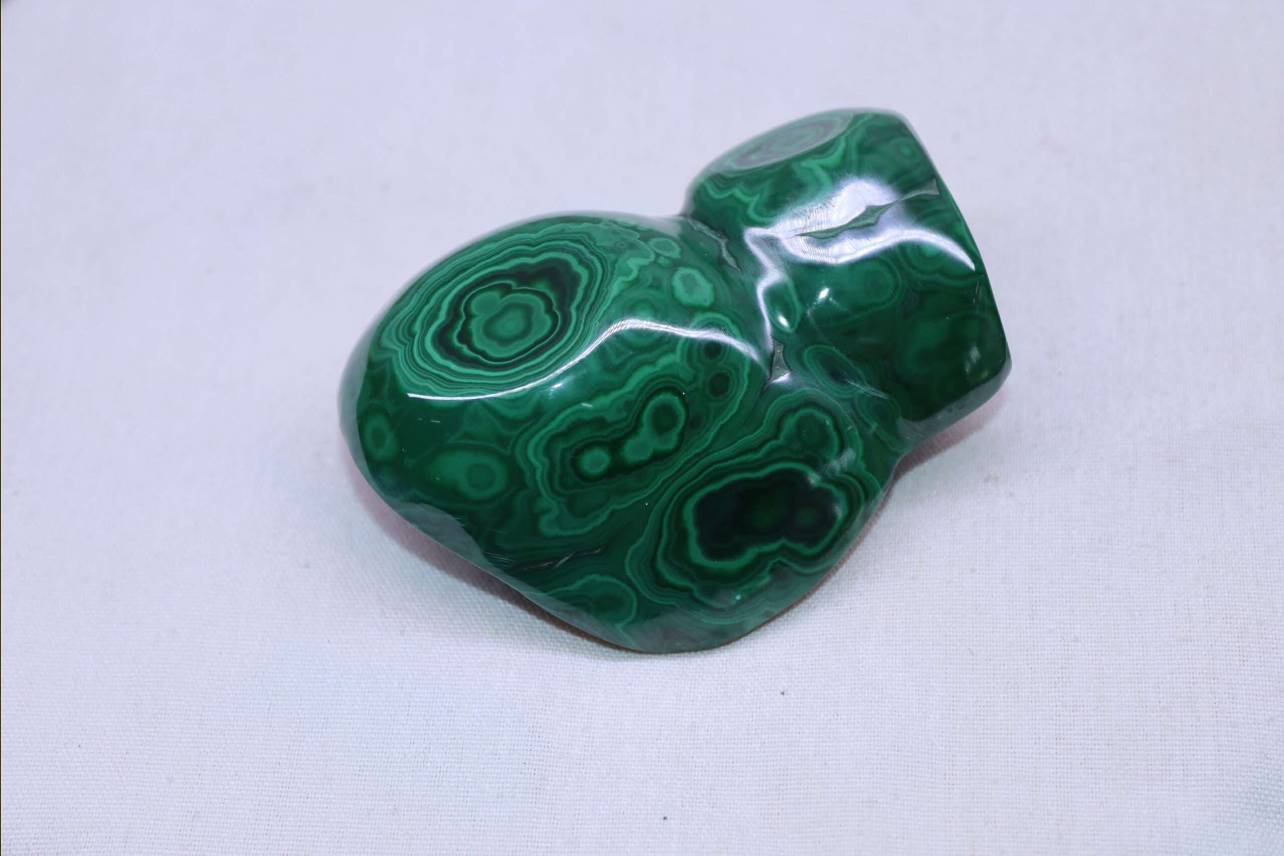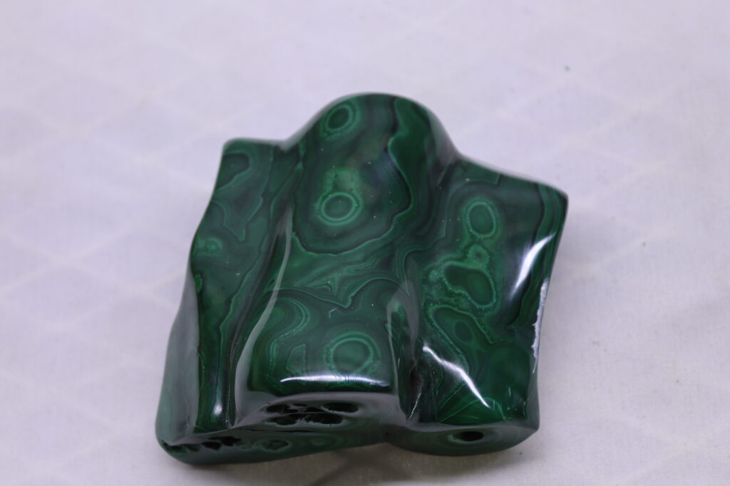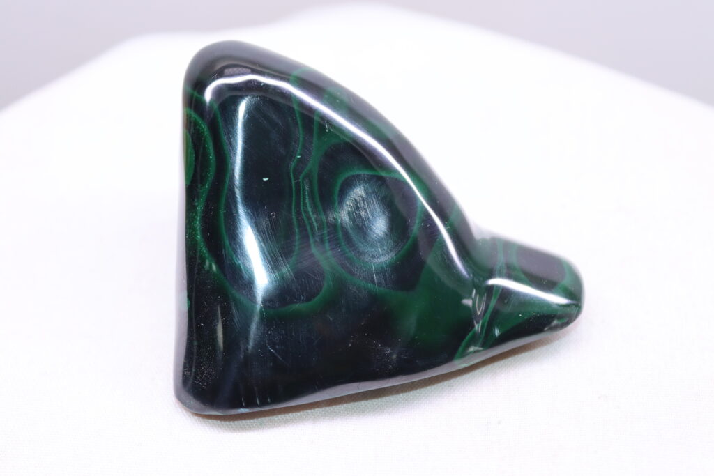 When cut and polished, malachite reveals stunning concentric, swirling, or wavy banding patterns in various shades of green, ranging from deep emerald to light mint tones. This enhancement not only highlights the stone’s natural beauty but also increases its durability for use in decorative objects, carvings, and jewelry. Beyond its aesthetic appeal, polished malachite is widely used in metaphysical practices, believed to be a powerful stone of transformation, emotional healing, and protection. Many also use polished malachite to absorb electromagnetic radiation from electronic devices.